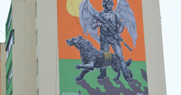 Стенописът изобрази войник със снайперска пушка и вълк. „Вовкулака е символ на специалните оперативни сили на въоръжените сили на Украйна, а изобразеният на стенописа войник има чертите на лицето на 33-годишен снайперист от отделен полк на Специалните оперативни сили, кръстен на принц Изияслав Мстиславич старши войник Уберт Мрахковски“, – докладва специализирана публикация „Армейски информ“.