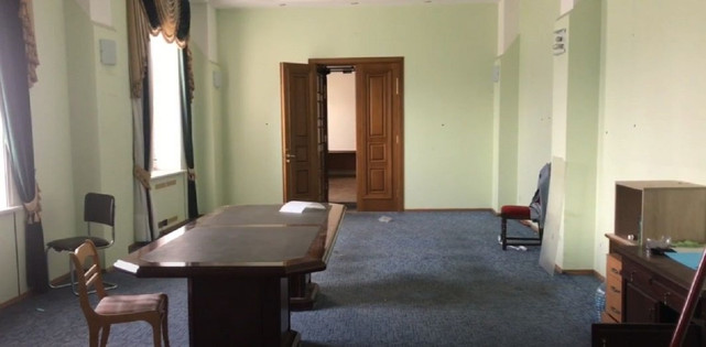 Както разбраха журналистите, мебели, телевизор и друго имущество изчезнаха от кабинета на шефа на Областната държавна администрация. В стаята е останал само портрет на ръководителя на регионалния съвет на Херсон Олександър Самойленко и изкуствена коледна елха.