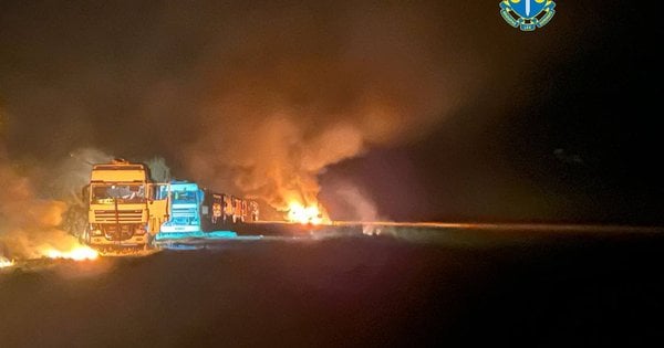 В резултат на нападението, което се случи около 20:30 ч., бяха повредени 20 камиона със зърно, които трябваше да се използват за прибиране на реколтата и транспортиране на реколтата. Един камион също се запали.