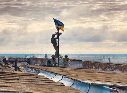 Ukrajinská armáda vztyčila modrožlutou vlajku ve vesnici městského typu Visokopilya v Chersonské oblasti. Fotografii zveřejnil na svém kanálu Telegram vedoucí prezidentské kanceláře Andriy Yermak. „Krok za krokem,“ napsal do komentáře pod fotku.