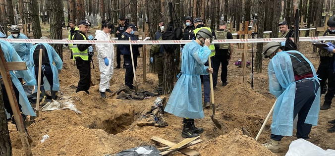 Šef istražnog odeljenja policije regiona Karkiv Sergej Bolvinov rekao je da je na mestu masovne grobnice u Izjumu pronađeno oko 440 grobnica. Sva tela će biti ekshumirana i poslata na forenzički pregled.