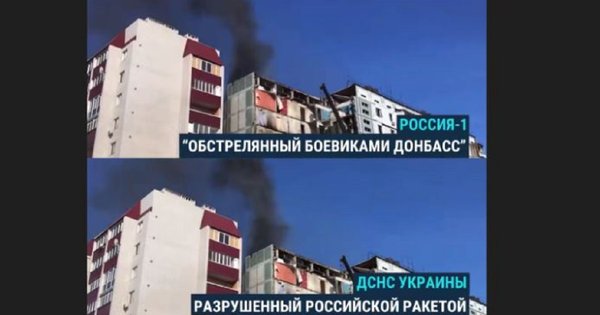 Državni TV kanal te terorističke zemlje „Rusija 1“ objavio je snimak stambene zgrade uništene ruskom raketom u Umanu zbog posledica napada ukrajinskih oružanih snaga na Donbas. Pažnja na ovo privukla je pažnju izdanja »Trenutno vreme».