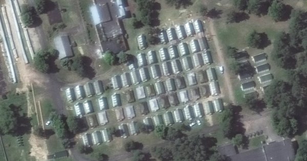 Nove fotografije pokazuju povećanje aktivnosti. Na fotografiji snimljenoj u nedelju prikazano je nekoliko kamiona i, verovatno, autobusa u blizini garaža gde ranije nije bilo velikog prevoza. Pikap kamioneti, vojna vozila i verovatno kombi iz sovjetskog doba i mala grupa ljudi takođe su vidljivi u blizini šatora.