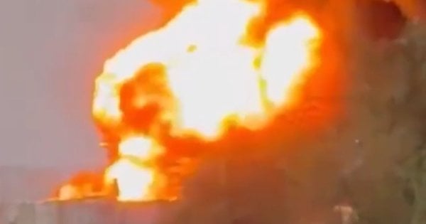 Videá zverejnené očitými svedkami ukazujú veľký stĺp dymu stúpajúci z miesta ropného skladu, ako aj silný požiar.